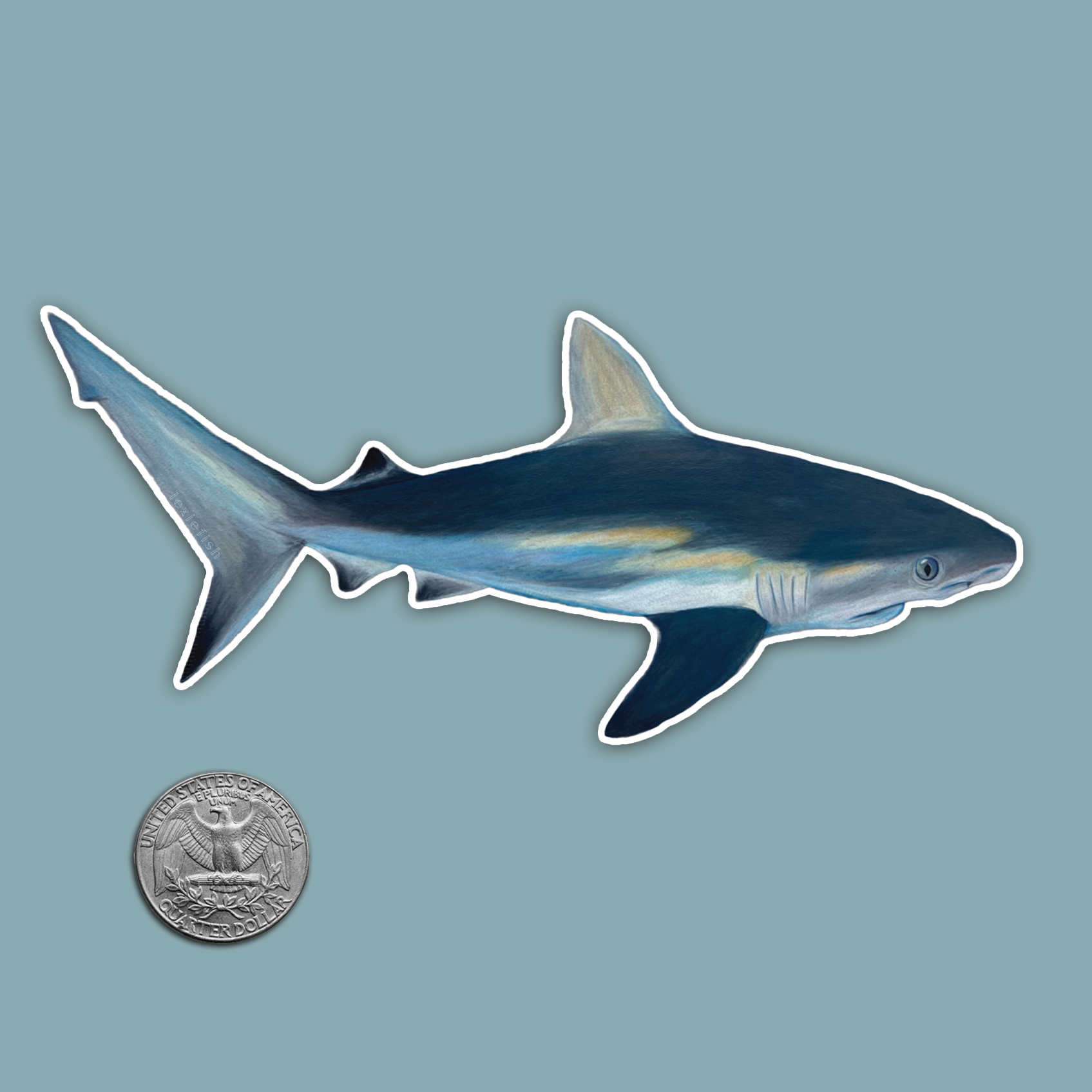 Bring sleek ocean style to your gear with this hand-drawn Reef Shark sticker—illustrated in colored pencil for a bold, textured look. Great for water bottles, laptops, surfboards, and more.